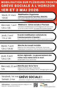 Solidarité populaire Estrie et ses membres se mobilisent pour tenir des journées de grève sociale le 1er et 2 mai 2026.